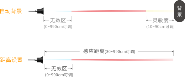 感应器为起点的⼀段⽆效距离。0~990cm可调。
